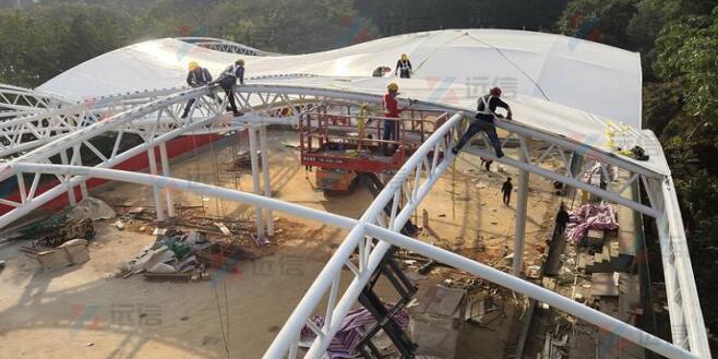 优点带动推广,风雨球场膜结构雨棚广范应用在学校操场、体育馆屋面、企事业单位球场甚至一些篮球、网球场俱乐部。